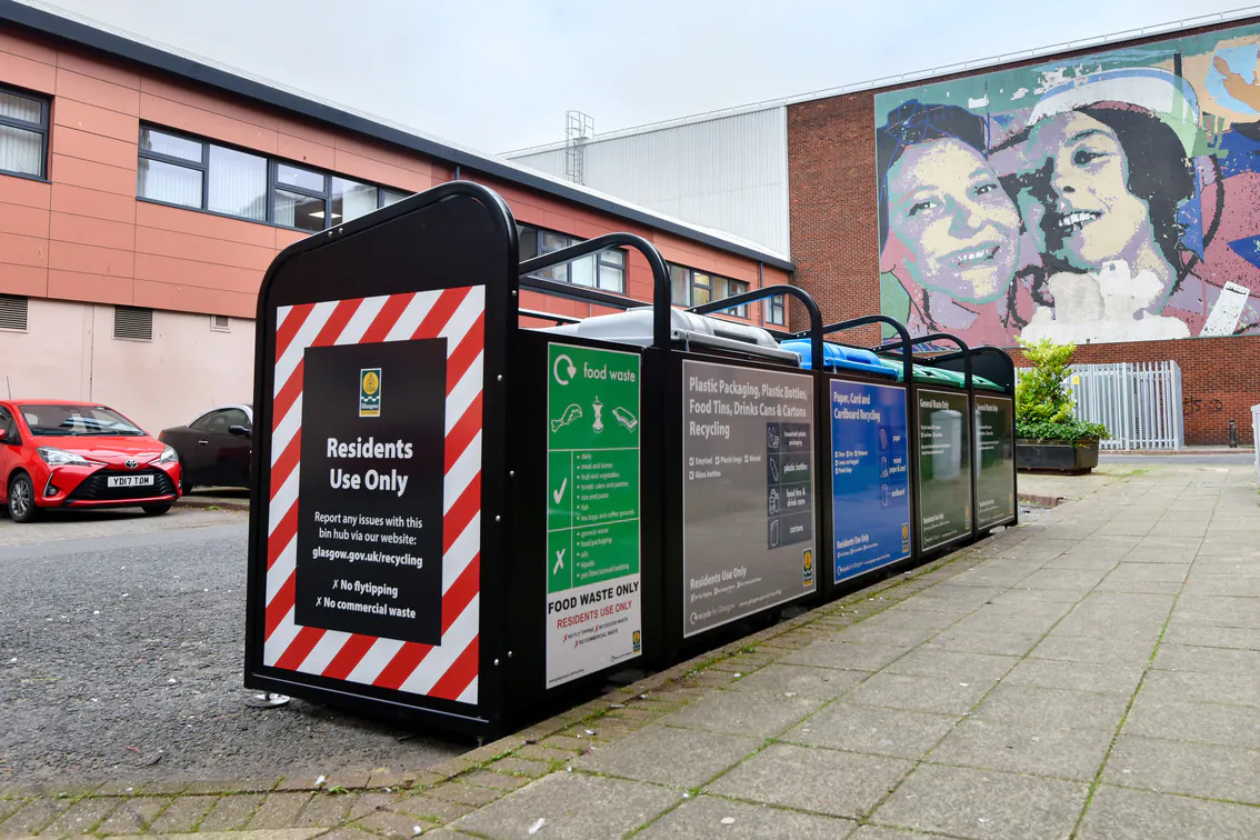 Glasgow City Council is introducing new bin hubs to make waste and recycling more efficient, reduce overflowing household waste, and improve back courts across the city. The hubs make it easier for residents to dispose of food, paper, and bottles responsibly while keeping shared areas tidy.