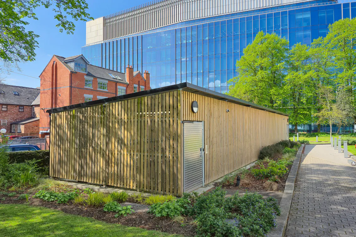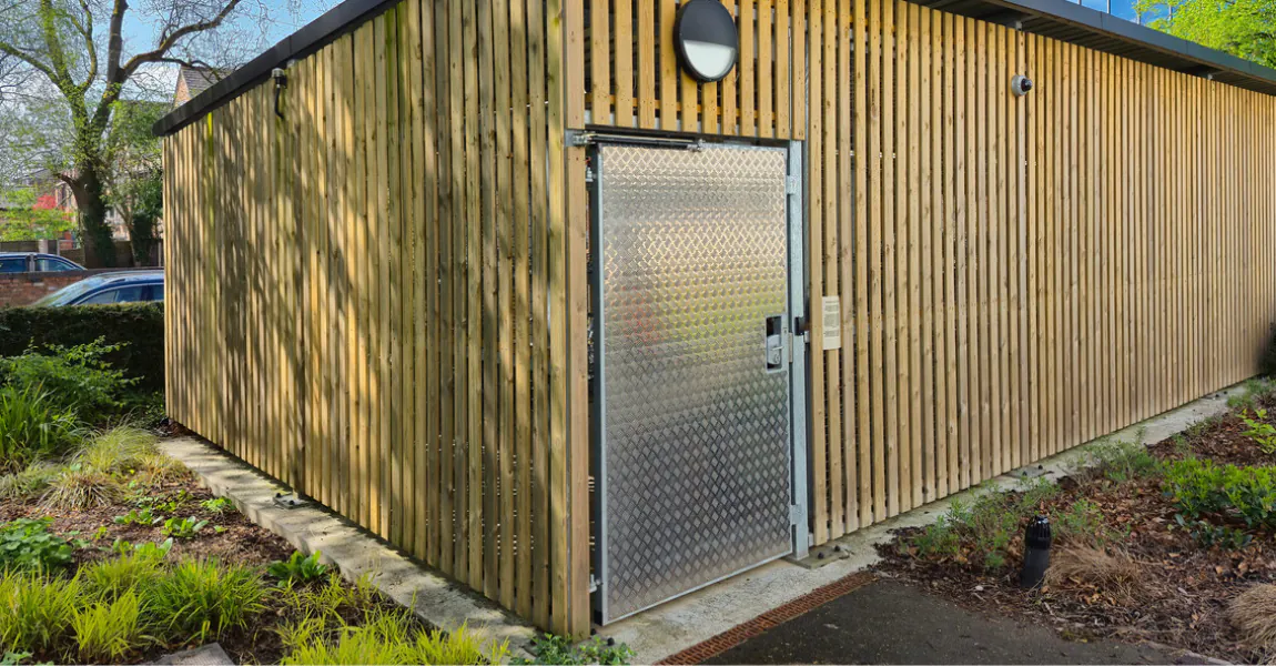 Our custom-built Blox cycle hub houses our two-tier storage system at The Christie NHS Trust, providing effortless operation and space for 210 bicycles. Built with a robust steel frame, durable timber cladding, and a heavy-duty stainless steel access-controlled door, this facility combines functionality, security, and style to encourage active travel for hospital staff and visitors.