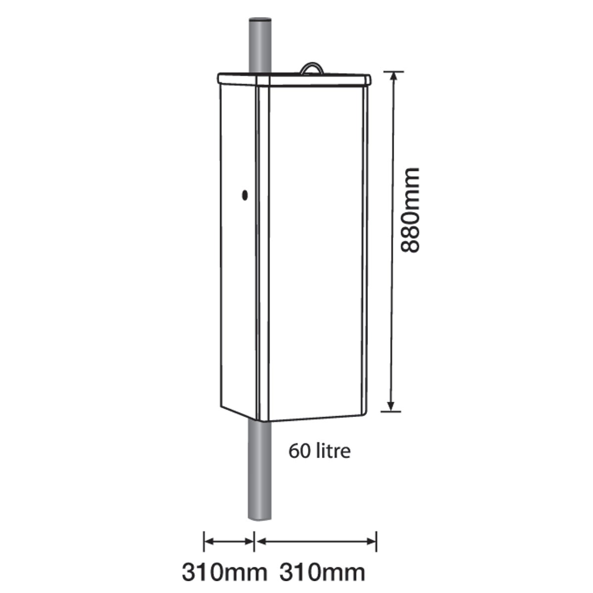 With a 60L internal capacity, this dog waste bin is well suited to locations with steady footfall where frequent emptying needs to be minimised without oversizing the unit. Its compact footprint allows it to be installed in a wide range of settings while remaining clearly visible to users.