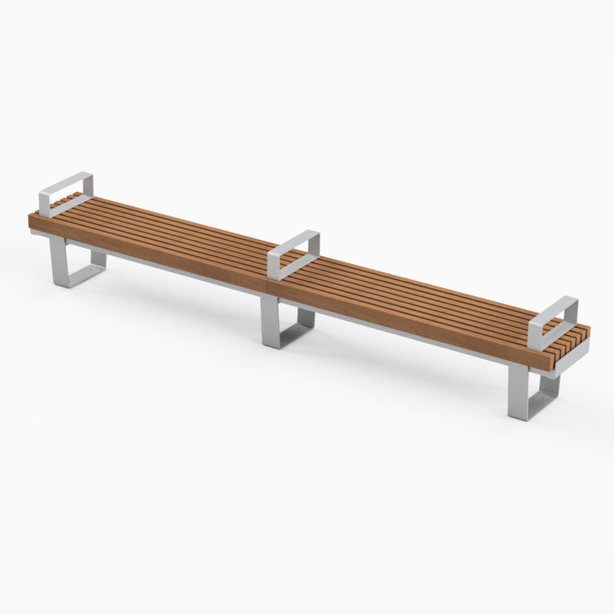 The orientation of the seat slats can be customised to either vertical or horizontal, with backrest slat orientation also adjustable for seat-only models. Optional armrests are available to enhance comfort and functionality. Timber selections include Iroko, softwood, or FSC-certified Iroko, ensuring durability and sustainability.