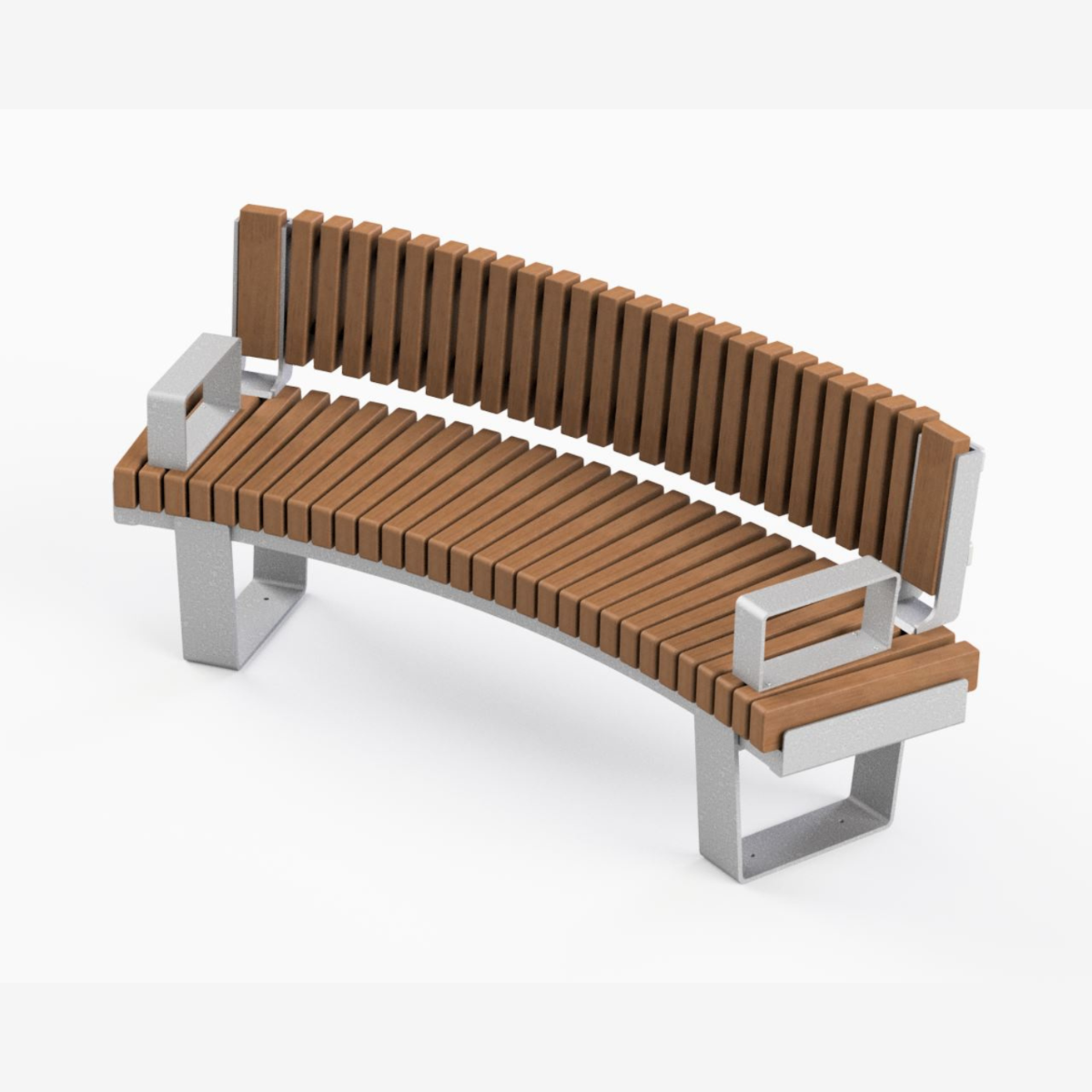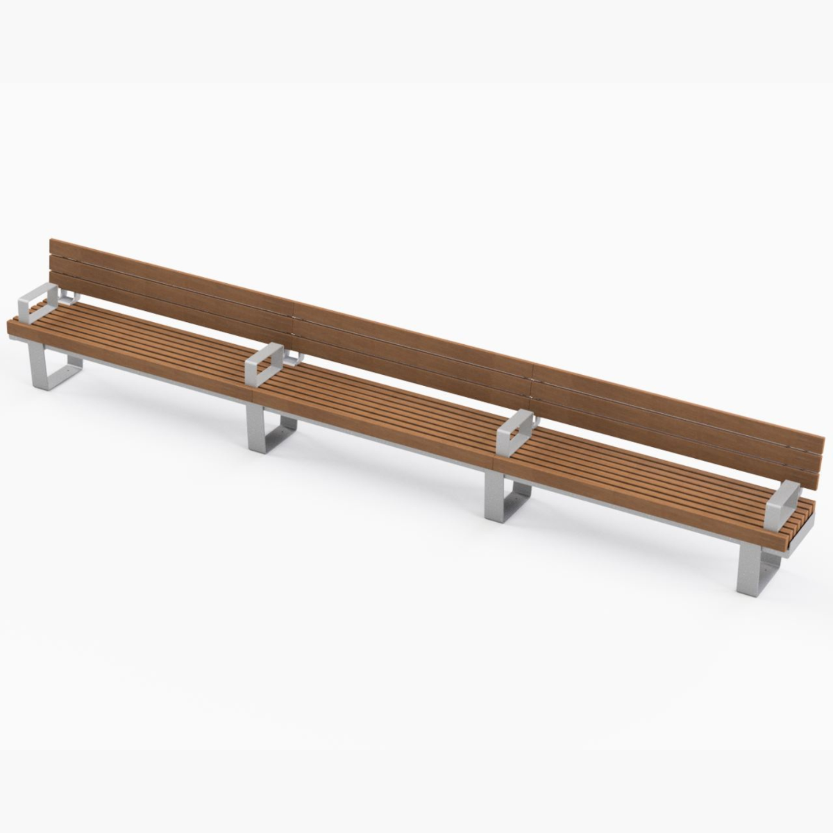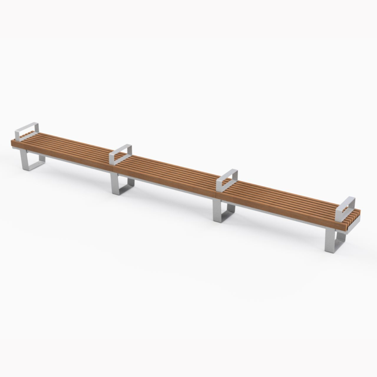 The Quad bench features bold rectangular steel legs that give it a modern, sturdy look. These strong frames provide a stable base built to withstand heavy use and harsh outdoor conditions, making the bench ideal for busy public spaces.