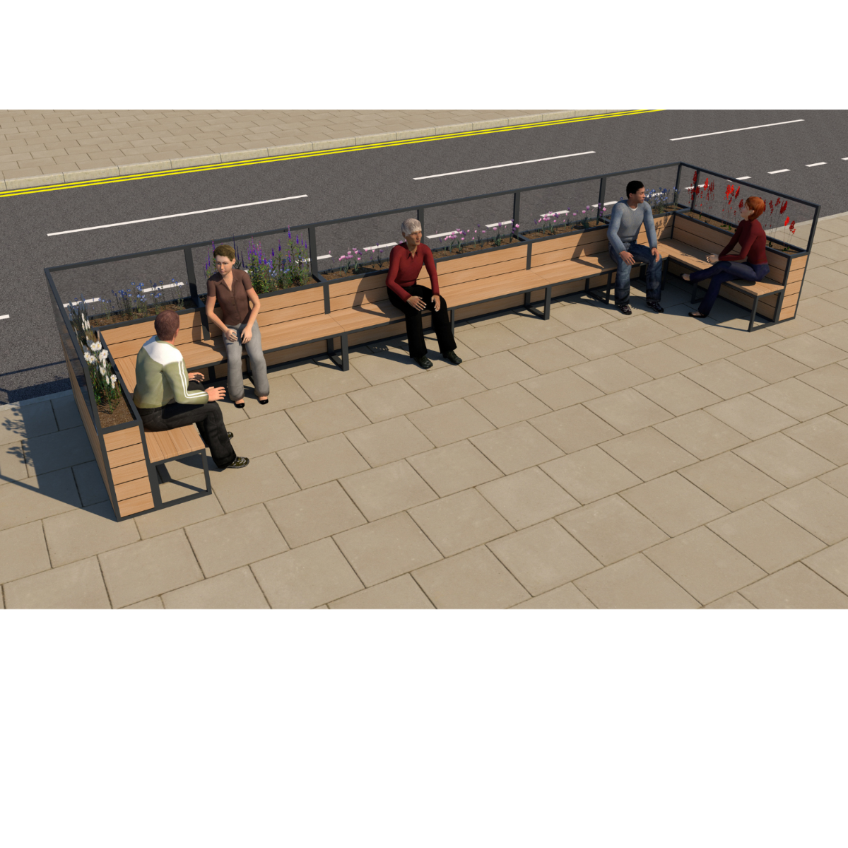 Parklet 6 – Large with Planters & Full Seating is a contemporary parklet system developed for locations where generous seating provision and strong visual presence are required. Designed specifically for pavement installation, it transforms underused street space into a defined area for rest, socialising and informal gathering.
