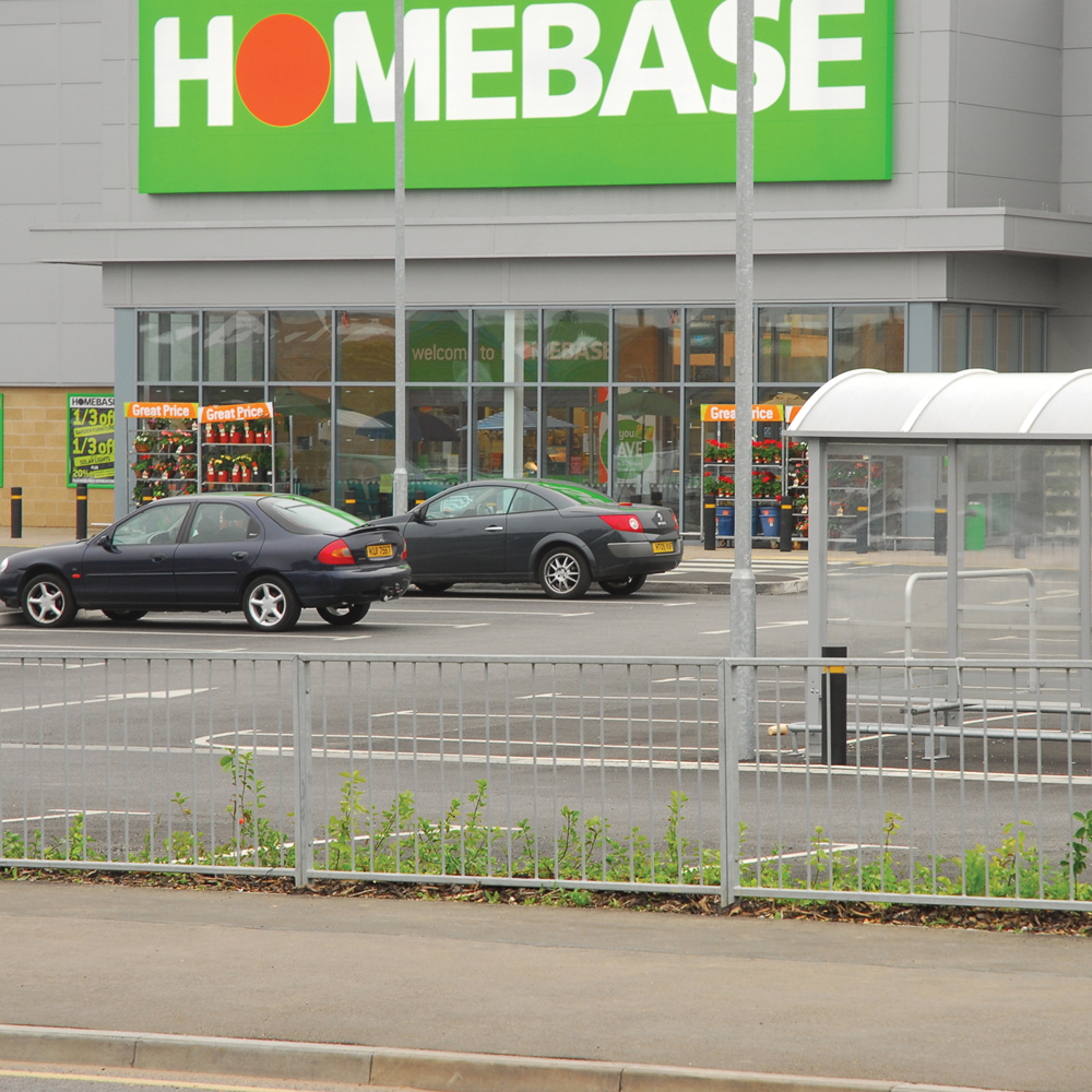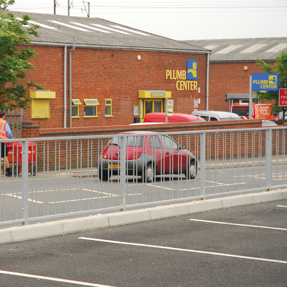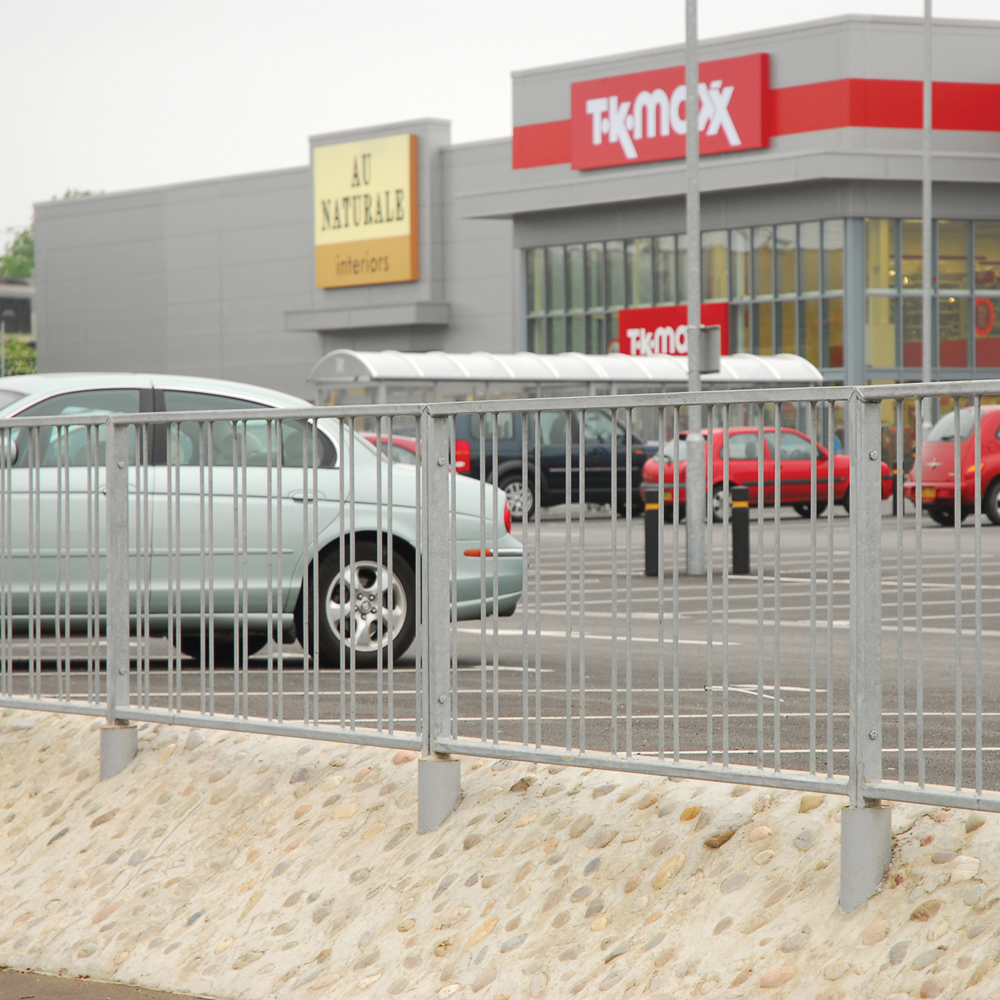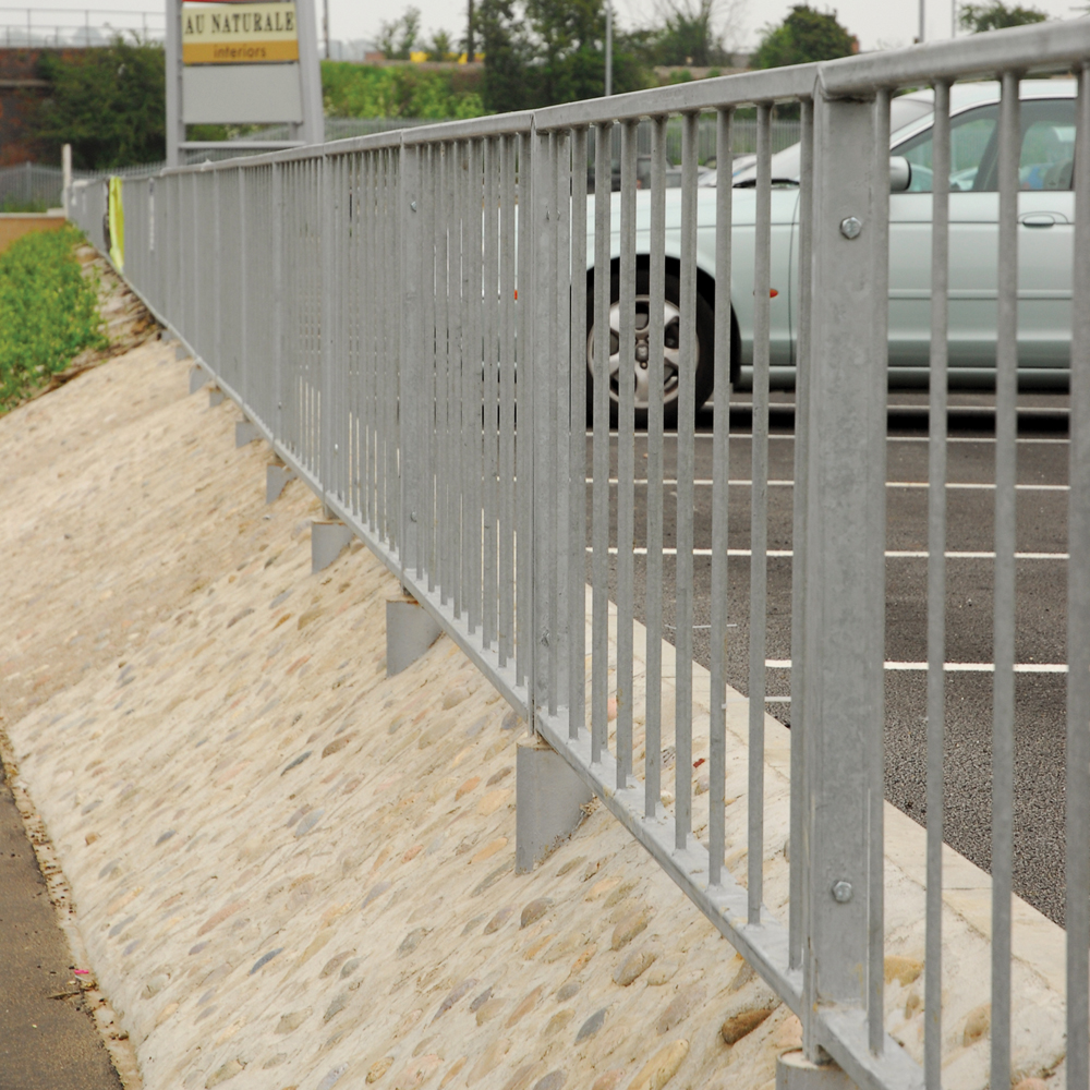 • High visibility pedestrian guardrail manufactured from 50 x 30mm box section steel with 12mm infill bars (16mm on request)