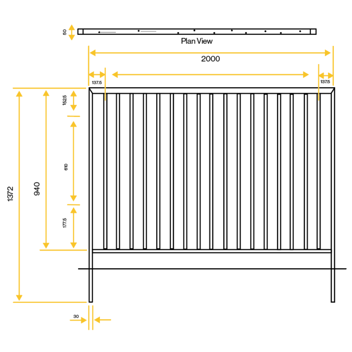 Product Dimensions: 50 x 30mm box section steel, 12mm infill bars staggered, 2000mm panels.
