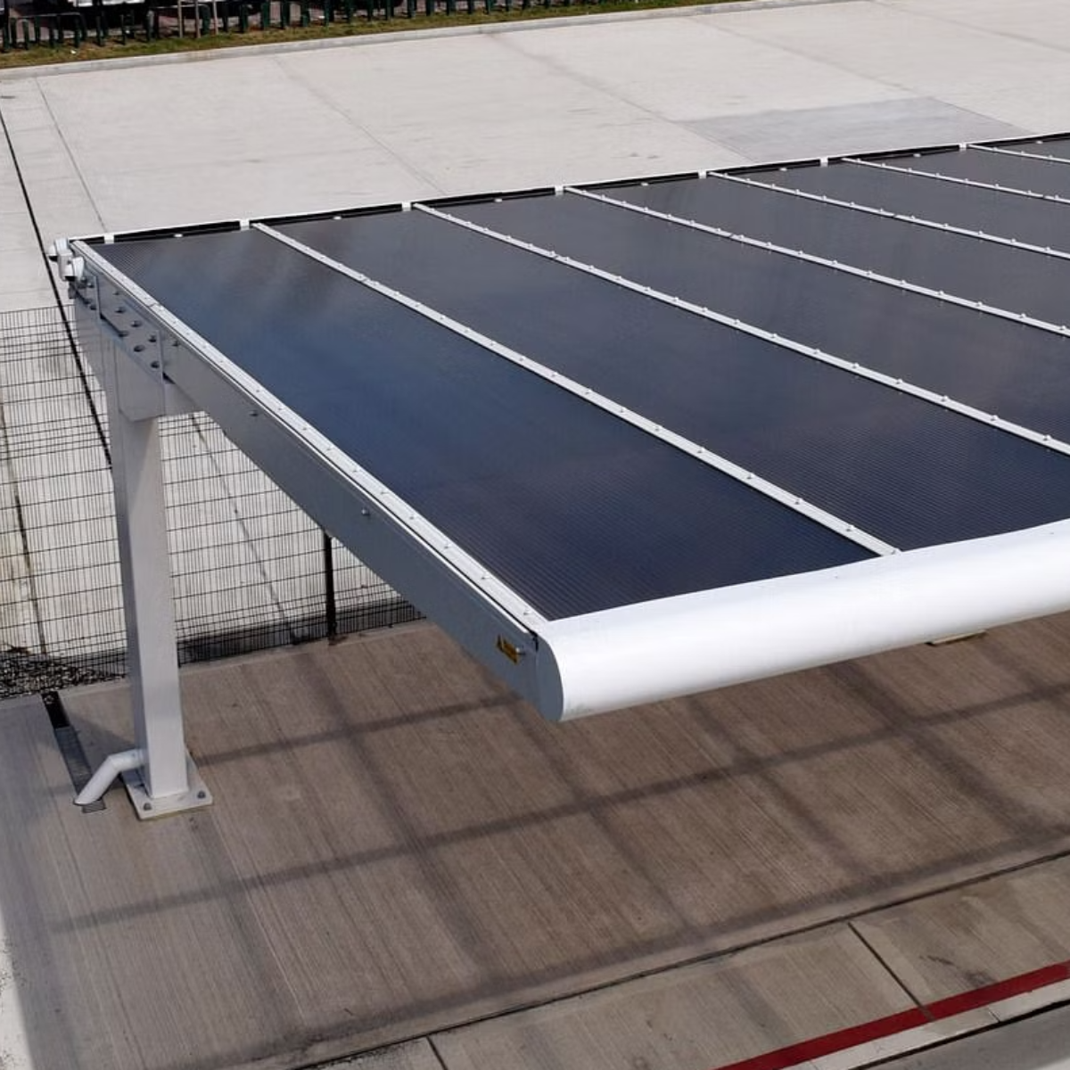 With a strong galvanised steel profile, this canopy marks out appropriate safe zones for drivers and pedestrians while offering a comfortable waiting environment.