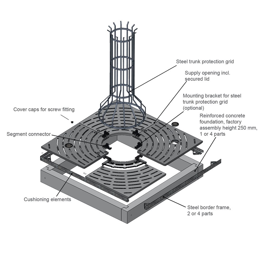 Part of the MeierGuss range the Tree Grilles are specifically designed for loadbearing application and are supplied with the following features as standard: