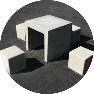 Concrete and granite. Heaviest and most permanent. Resists theft, vandalism, and fire. Best for urban public realm and high-security settings.