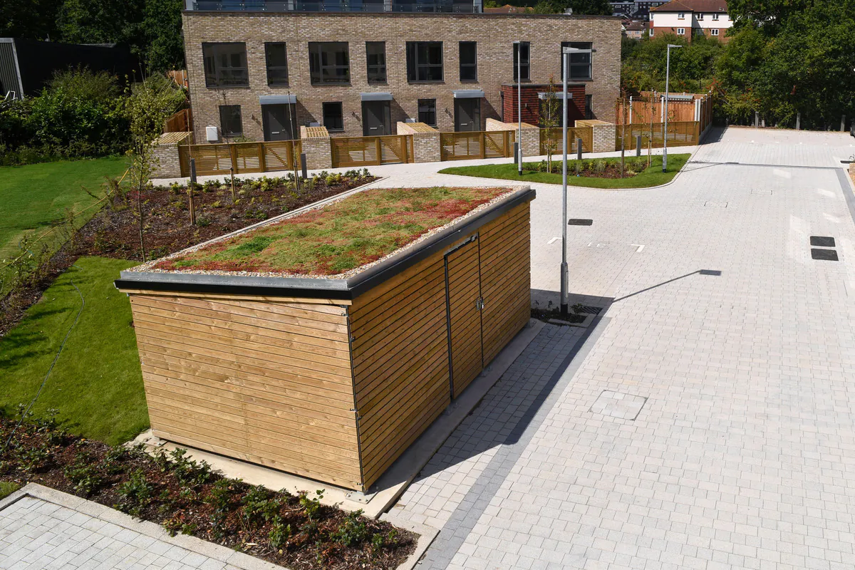 Broxap were asked to supply a series of cycle shelters that would suit the aesthetic look of the surrounding apartments/homes.