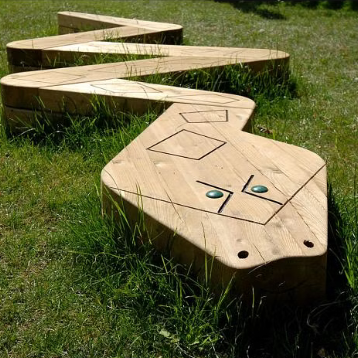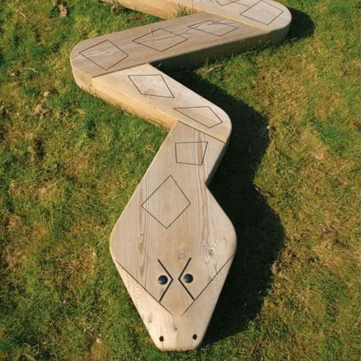 The long slinky timber snake can be placed on tarmac or grass. Children can walk along his wiggly body to help develop balancing skills. Ideal for imaginative play.