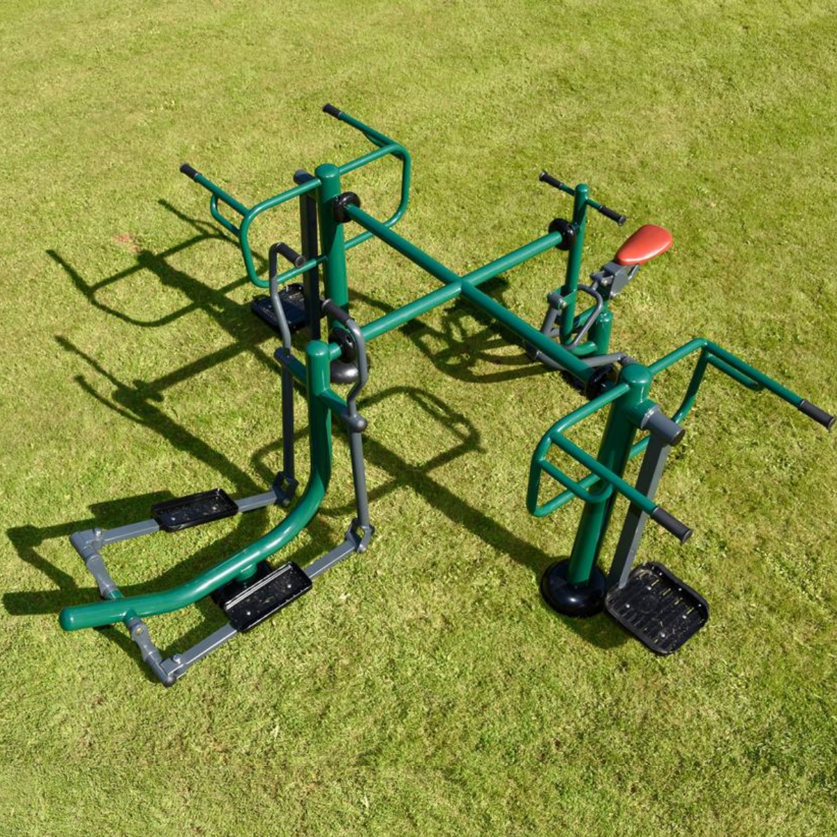 Our Spacesaver Multi Gym includes 2 Slalom Skiers, a Sky Stepper and a Horse Rider all combined into one multi gym to maximise the social interaction of the users while reducing the footprint required to install the gym.