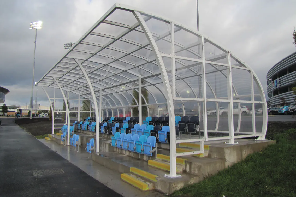 Athletics stadia can also benefit as well as football and rugby grounds with trackside shelters offering weather protection to officials and teammates.